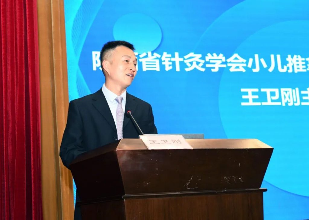 陈琛在致辞中介绍了医院的发展情况以及针灸推拿康复科(小儿推拿)的基本概况。他表示,长期以来,陕西中医药大学附属医院大力支持陕西省小儿推拿事业的发展,一方面依托自身专业资源与临床优势,持续举办小儿推拿专业培训班,为行业培养实用型人才;另一方面积极开展公益义诊活动,将优质服务延伸至基层,相关工作获得社会各界广泛认可。未来,医院将进一步整合资源、强化优势,全力打造陕西省内极具影响力的小儿推拿培训基地,为区域小儿健康事业发展提供更强支撑。